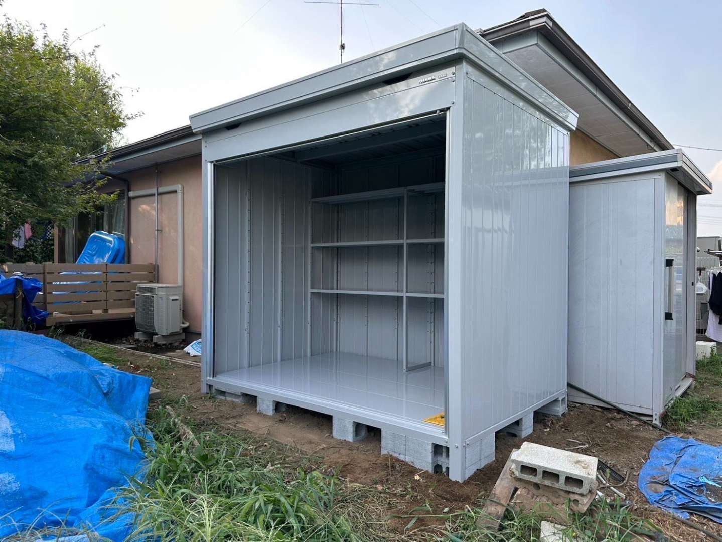 戸建て シャッター物置 外構工事 ドマール設置 エクステリア 群馬県 邑楽郡 イナバシャッター物置 ドマール設置 イナバのシャッター物置をドマール設置をしました。ドマールは、大型荷物の出し入れがしやすいシャッター式物置です。ドマール本体を組み立て、基礎ブロックを設置し、台風や地震などで物置が転倒しないように、物置の四隅をアンカープレートなどで地面に固定する工事を行います。前面がシャッターになっているため、幅広い物の収納に適しています。開け口を問口いっぱいに開くことができるので、大きい物も出し入れが楽で、保管している物も探しやすいです😊 Before navigate_next After 竣工日 2025.8.25 場所 群馬県邑楽郡 施工内容 シャッター物置 ドマール設置 1 / 1 前の施工事例 戸建て 栃木県 佐野市 PCフェンス・目隠しフェンス・人工芝 次の施工事例 戸建て 栃木県佐野市 シャッター✙カーポート オリジナルのガレージ